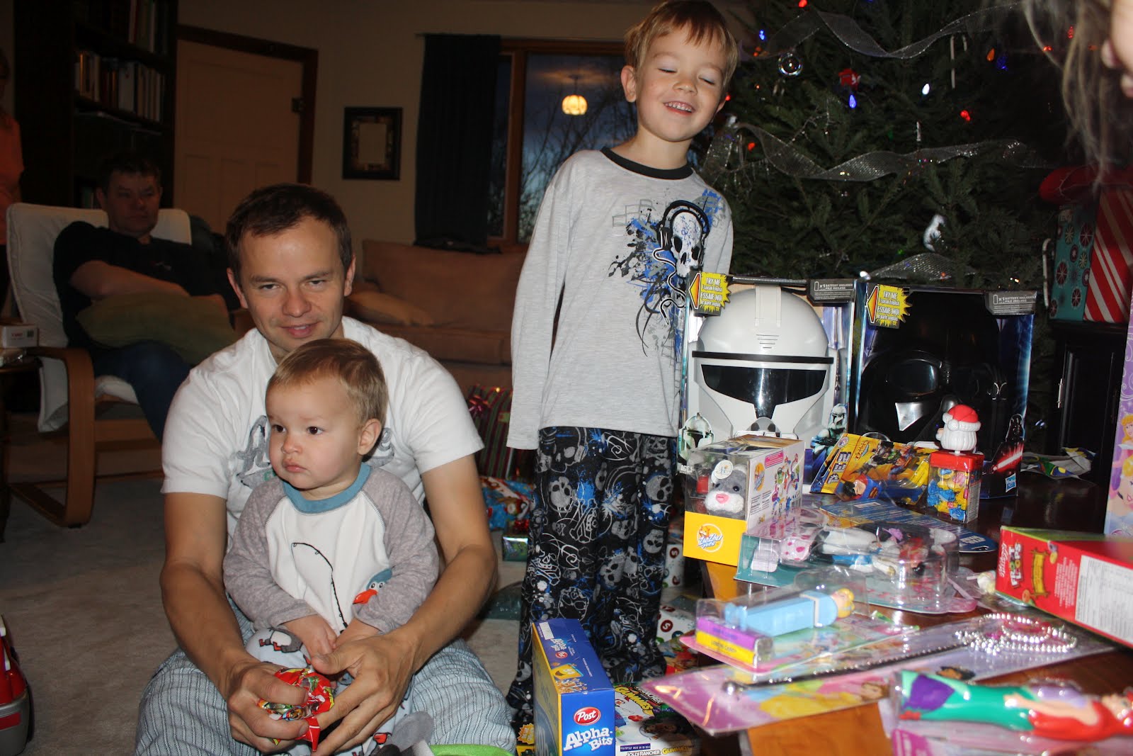 Gift highlights for the kids: Tanner got the clone trooper and darth vader masks he wanted from Santa, and a bunch of Star Wars action figures from Hattie, Peter, and dad. Hattie got a princess castle from Santa and Pinkalicious books and doll from Tanner and mom. (Tanner was SO excited for her to get these from him. It was really cute to watch his excitement as she was opening them and then gushing over them with her) Peter got train stuff from everyone.